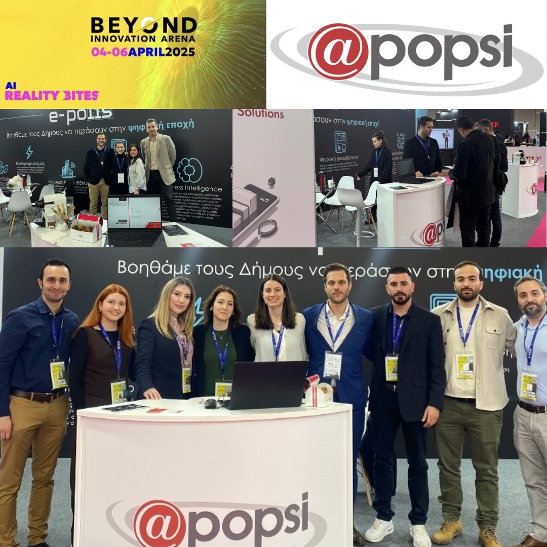 APOPSI Group of Companies participated dynamically in BEYOND EXPO 2025, presenting its innovative smart city platform, E-polis. During the exhibition, targeted B2B meetings were held with representatives from Greece and abroad, fostering dialogue around innovation, technology, and sustainable urban solutions. Our participation reaffirms the Group’s commitment to shaping a smarter and more sustainable urban future.